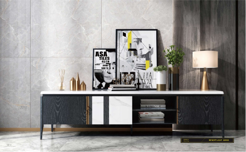 以时下流行的灰色搭配线条,层次分明,纷乱中自成一态,灰与白的互相渗透和过渡,相辅相融,彰显出石材的低调的奢华,独有绝代风华之美感。