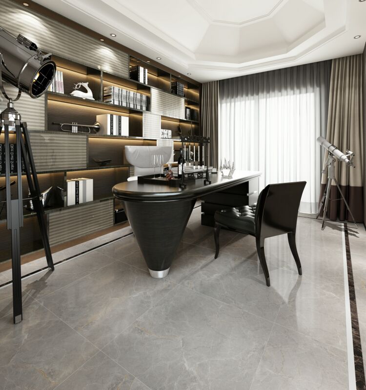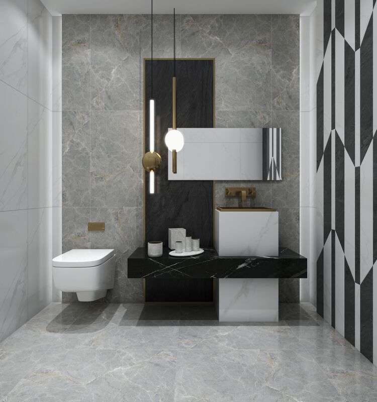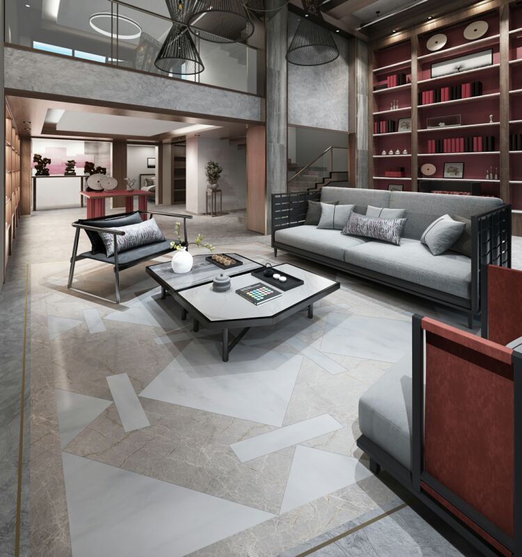以时下流行的灰色搭配线条,层次分明,纷乱中自成一态,灰与白的互相渗透和过渡,相辅相融,彰显出石材的低调的奢华。